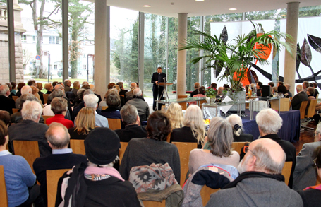 Bereits im Vorfeld zeichnete sich ein großes Interesse an der Ausstellung „Formensprache“ ab. 80 Anmeldungen für die Teilnahme an der Vernissage am 02. Februar waren bis kurz vor Ausstellungseröffnung eingegangen. Dass sich die Gästezahl allerdings verdoppeln sollte, war eine überaus erfreuliche Überraschung und eine große Bestätigung für die Künstler_innen. „Das Symposion war bereits großzügig bestuhlt, schnell waren alle Plätze belegt, doch der Gästestrom riss nicht ab“, schildert Professor Dr. Hans-Ulrich Gehring seine Eindrücke von der Vernissage. Als Studienleiter des Themenbereichs „Kultur, Bildung, Religion“ zeichnet er seit Jahren für die Ausstellungen an der Evangelischen Akademie verantwortlich. Die Ausstellungen an der Akademie seien immer gut besucht, aber dass rund 160 Gäste zu einer Vernissage kommen, sei schon etwas Besonderes. „Beide Künstler_innen sind in der Region bekannt. Martina Geist stammt aus Stuttgart, Werner Stepanek aus Göppingen. Diese Tatsache hat sicherlich auch eine Rolle gespielt, zeigt aber auch, dass man die Arbeit der beiden in der Region wertschätzt.“